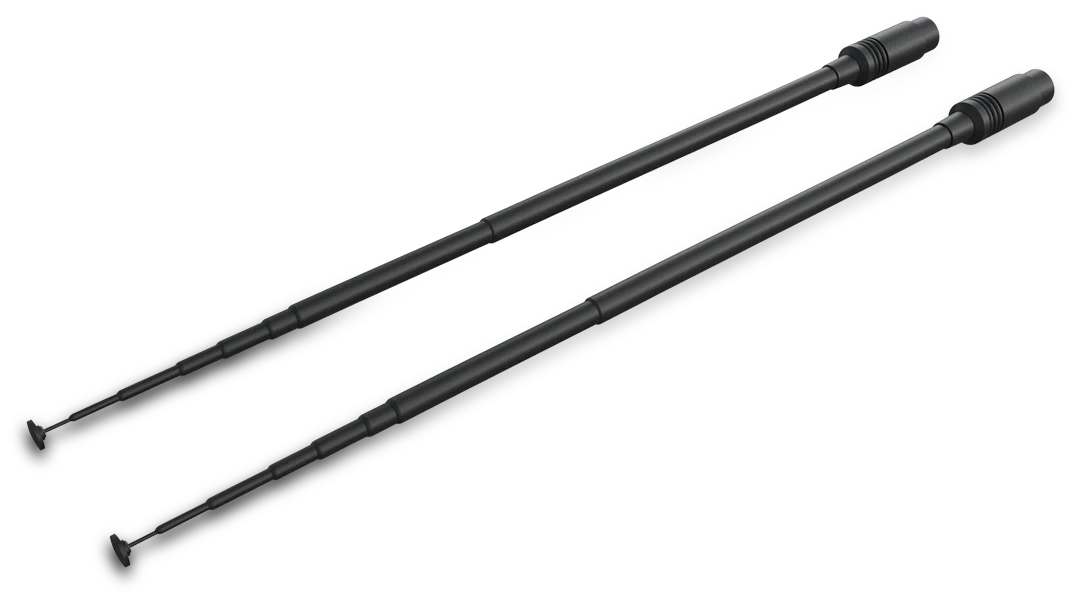 Two antennas mounted on the moving part of the main unit. The antennas length can be controlled as desired.