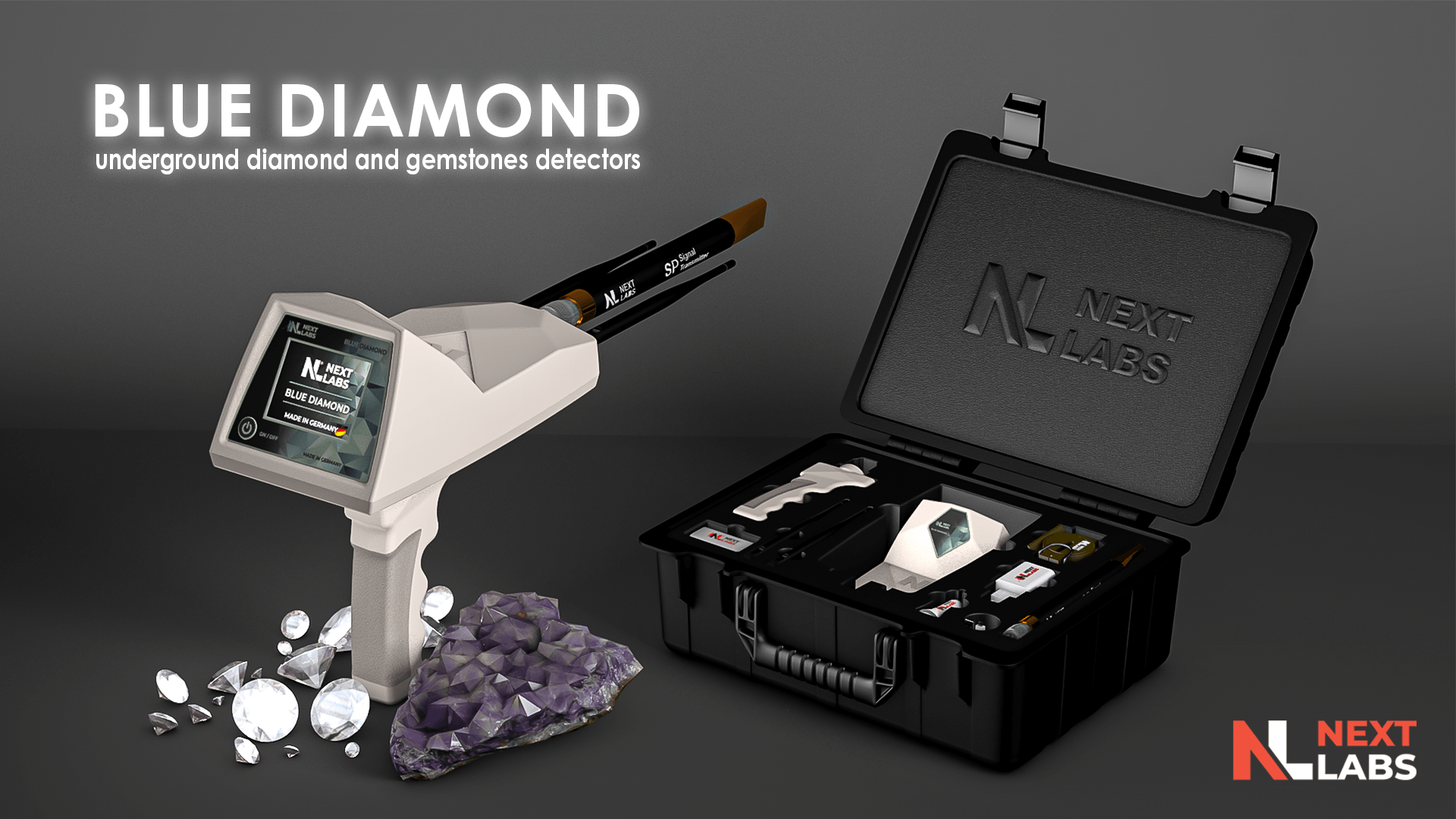 Blue Diamond is a brand new Long-Range diamond and gemstones detector from Next Labs Detectors – Germany that combines ease of use and simplicity with great performance in finding and locating all types of valuable gemstones such as emerald, garnet, sapphire, and more in addition to diamond.
