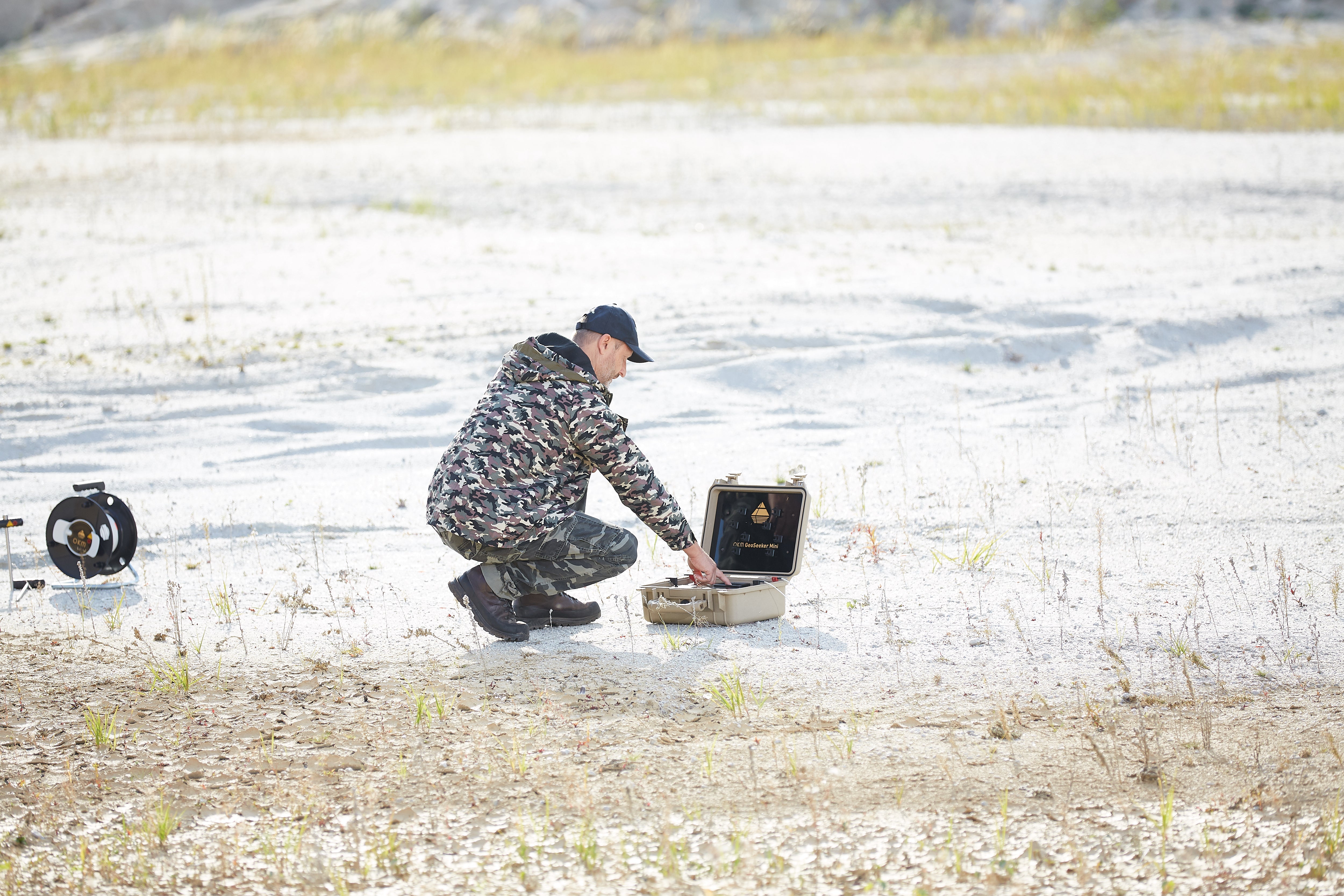 The geoelectrical detector OKM GeoSeeker Mini can be used to detect underground water resources as well as hidden cavities. Both structures can be located due to its specific characteristics of electrical resistivity.