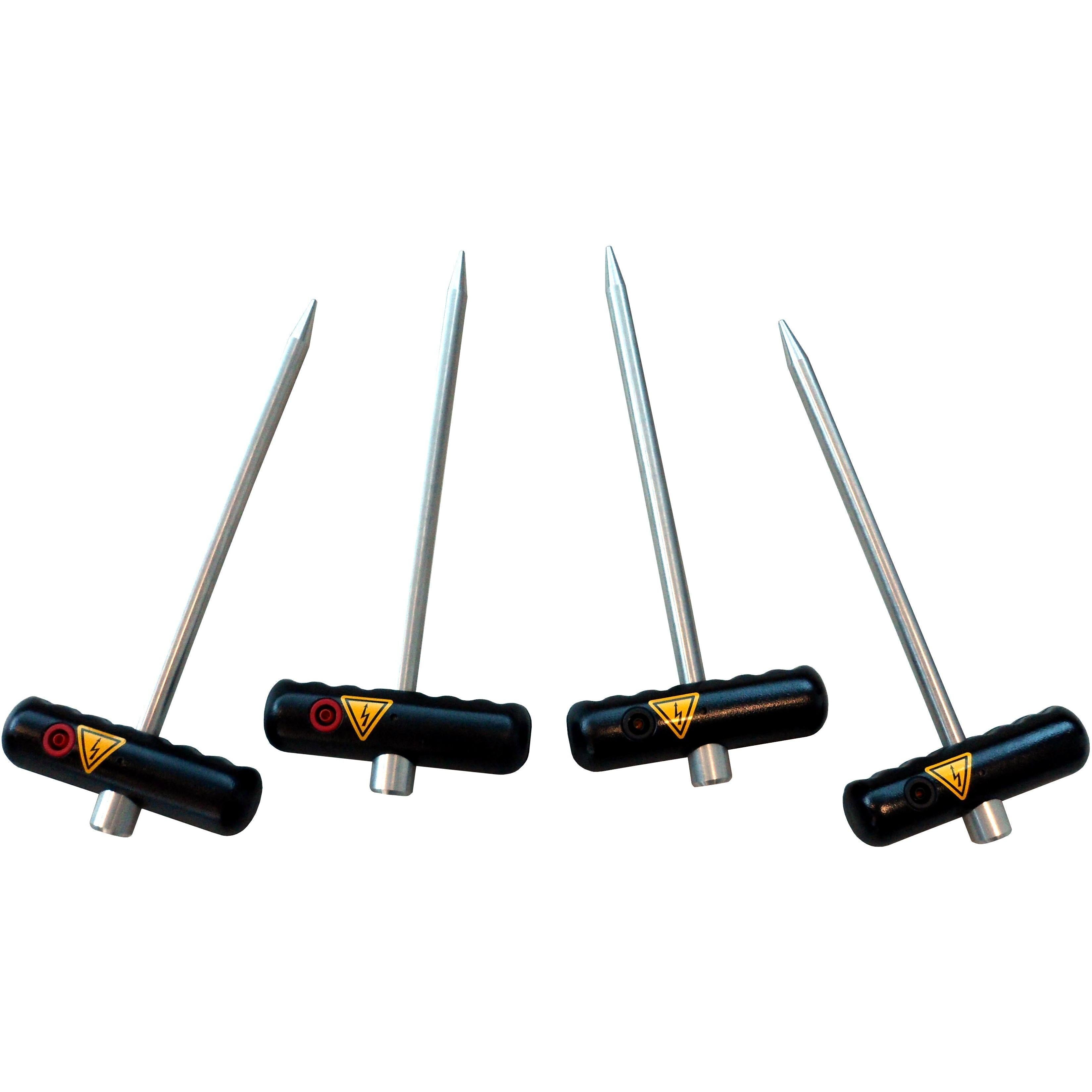 During the measurement the electrodes have to be replaced several times to measure the ground resistivity at certain places. All instructions can be read from the color display, where the results are presented after each single scan. At the very end of a measurement the final result is shown as a graphical 2D scan image.