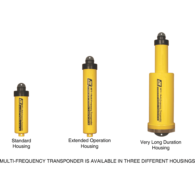 The standard frequencies are: 20kHz to 50kHz in 500Hz steps (special frequencies are also available). The MFT-1 can be automatically activated when put in the water or manually activated with a switch before deployment. Many MFT-1 can be deployed in the same general area, each transmitting a different frequency. A diver using the DHI-1 diver held interrogator can pinpoint the exact location of each MFT-1 transponder.