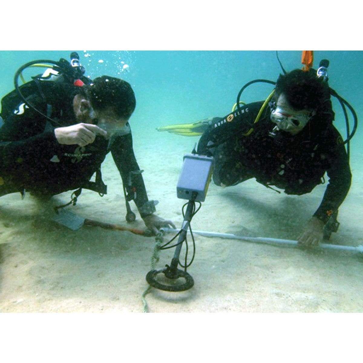 The claim-to-fame of this pulse induction detector is its ability to ignore minerals in the environment while maintaining high sensitivity to all metal targets. It is not affected by highly mineralized salt water, coral, rocks with a high iron content, or magnetic (black) sand; all of which drive conventional metal detectors crazy. The Pulse 8X detects all metals from coins and jewelry, to anchors and cannons; and does it on land, or in fresh or salt water. The diver is alerted to presence of a metal target by both visual readout (shown on the meter) and an audio output (heard in the underwater earphone). The detection range for a target is unaffected by the medium between the detector’s coil and the metal object. Performance does not vary whether detecting through air, water, silt, sand, or solid coral.