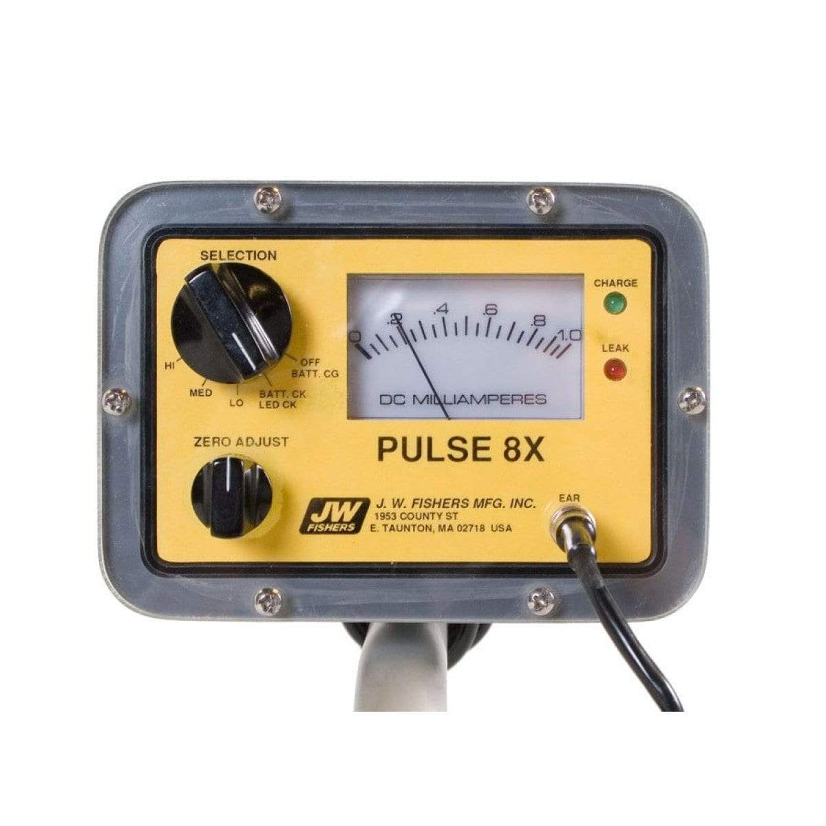 The Pulse 8X comes with all the accessories needed to use the detector on land or dive to depths of over 200 feet. The standard package includes a corrosion proof PVC handle for underwater use, an anodized aluminum handle for land use, underwater and land headphones. The package also includes AC and DC battery chargers, a hip-mount kit for the electronics housing, rugged Cordura carry bag, spare parts kit, and JW Fishers Search Team hat.